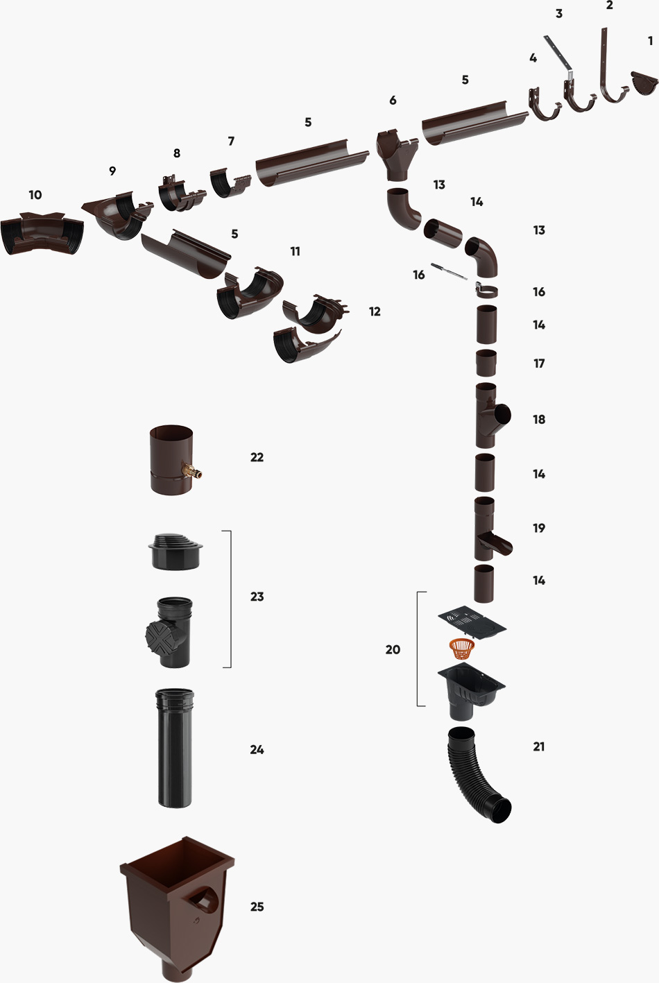 Színek: [Barna RAL 8019] [Fehér RAL 9003] [Téglavörös RAL 8004] [Grafit RAL 7015] [Selyemfényű grafit RAL 7016] [Sötétpiros RAL 3009] [Sötétbarna RAL 8017] [Fekete RAL 9005]